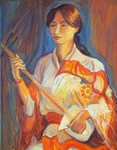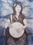 2012The traditional instrument that Rei plays in this painting is called a Samisan. Traditionally cat guts were used for strings and the music could howl like a cat!