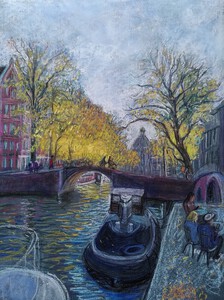 2021An autumn day on a carfree street giving a chance to draw this gem of a tugboat on the Brouwersgracht Amsterdam.